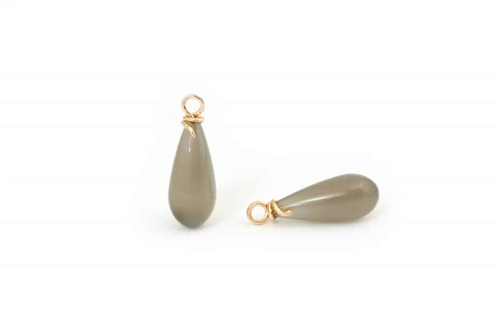 14 karat guld vedhæng med grå månesten. Vedhængene kan sættes i øreringre som et vedhæng, så de kan give et ekstra pift.
