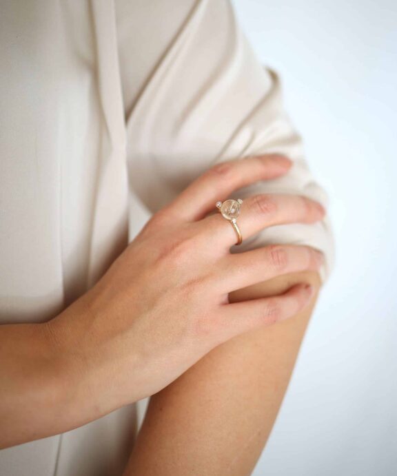14 karat guld ring med 3 valgfrie sten som medfølger. Super fin cocktail ring, som kan bruges til festlige lejligheder. Ringen kan sættes sammen med andre ringe.