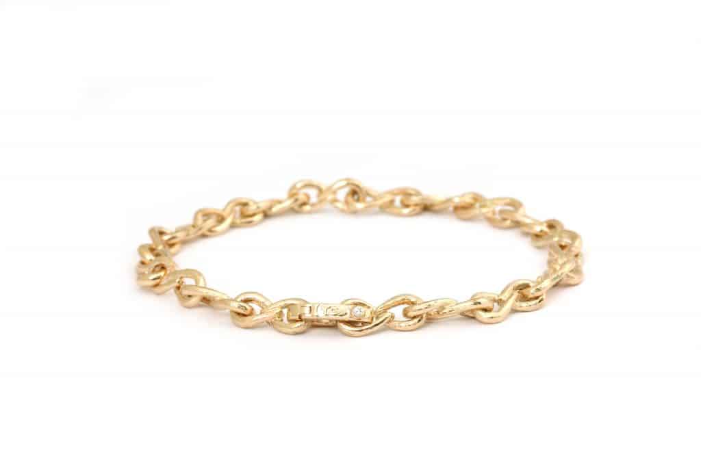 14 karat massiv guld armbånd med brillant på låsen. Brillanten er på 0,01 carat i kvaliteten top wesselton/vs. Armbånd har en standard længde på 18 cm, men kan laves i alle længder.