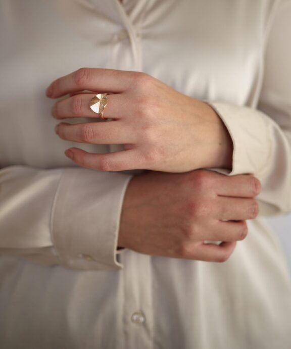 14 karat guld ring uden sten. Ringen er fra serien LILY LUMINA hvor der også findes vedhæng og øreringe til. Ringen er håndlavet i massiv 14 karat guld med materet overflade.