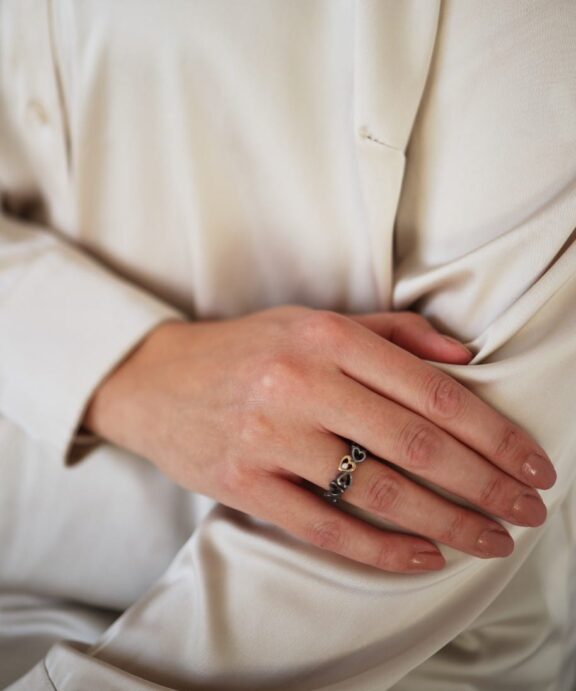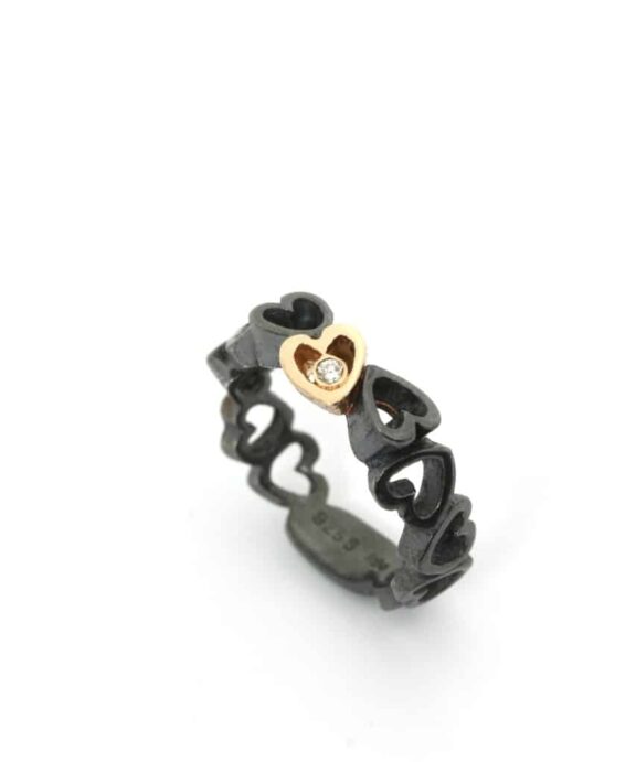 Ringen Open Your Heart er lavet i 925 sterling sølv med et hjerte i 14 kt. guld og en 0,02 ct. TW / VS diamant i guldhjertet. Vælg mellem almindeligt og oxyderet sølv.