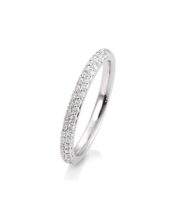 14 karat hvidguld ring med to rækker med brillanter på i alt 0,30 carat i kvaliteten wesselton/si. Ringen kan bruges alene eller sættes sammen med andre.