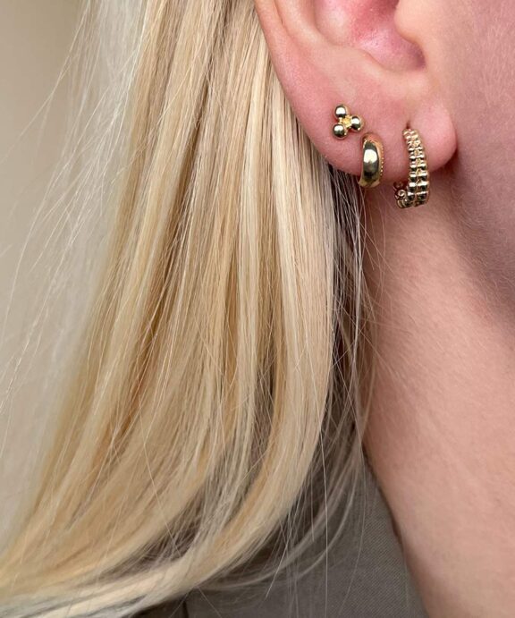 Flotte 8 karats guld øreringe med tre kugler som giver en fin fylde på øret.