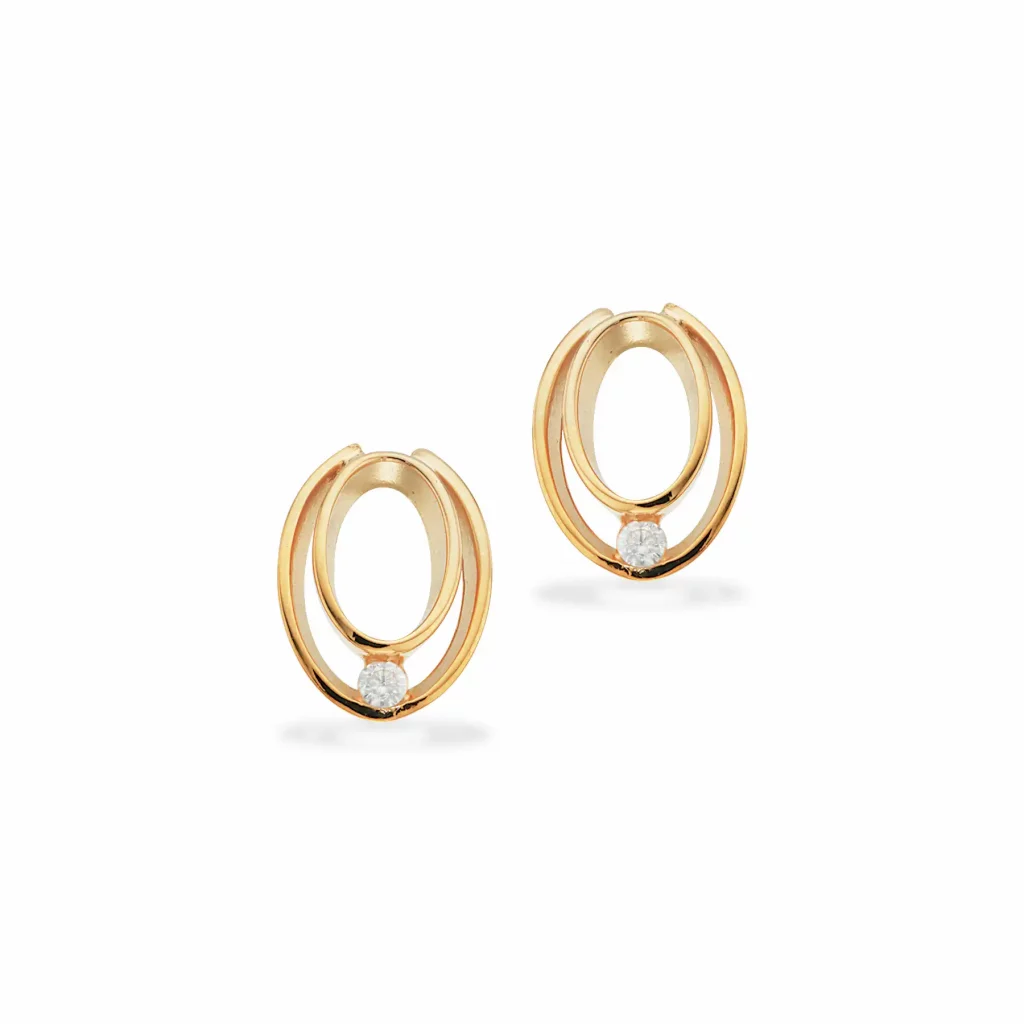 Flotte klassiske 8 karats guld øreringe ovaler med en zirkon i bunden.