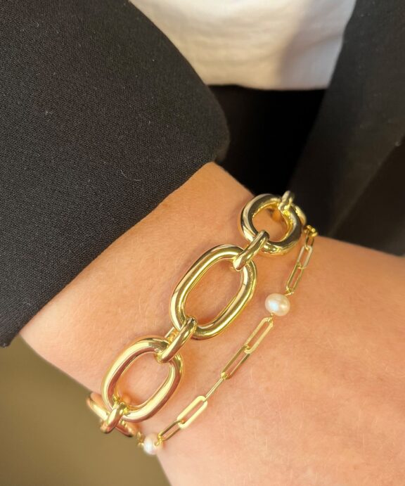 Endelig et armbånd der fylder om håndleddet. Et fint armbånd til kvinden der kan lide armbånd med list størrelse. Armbåndet er skab i sterling sølv og forgyldt med guld. Smykket er stemplet 925.