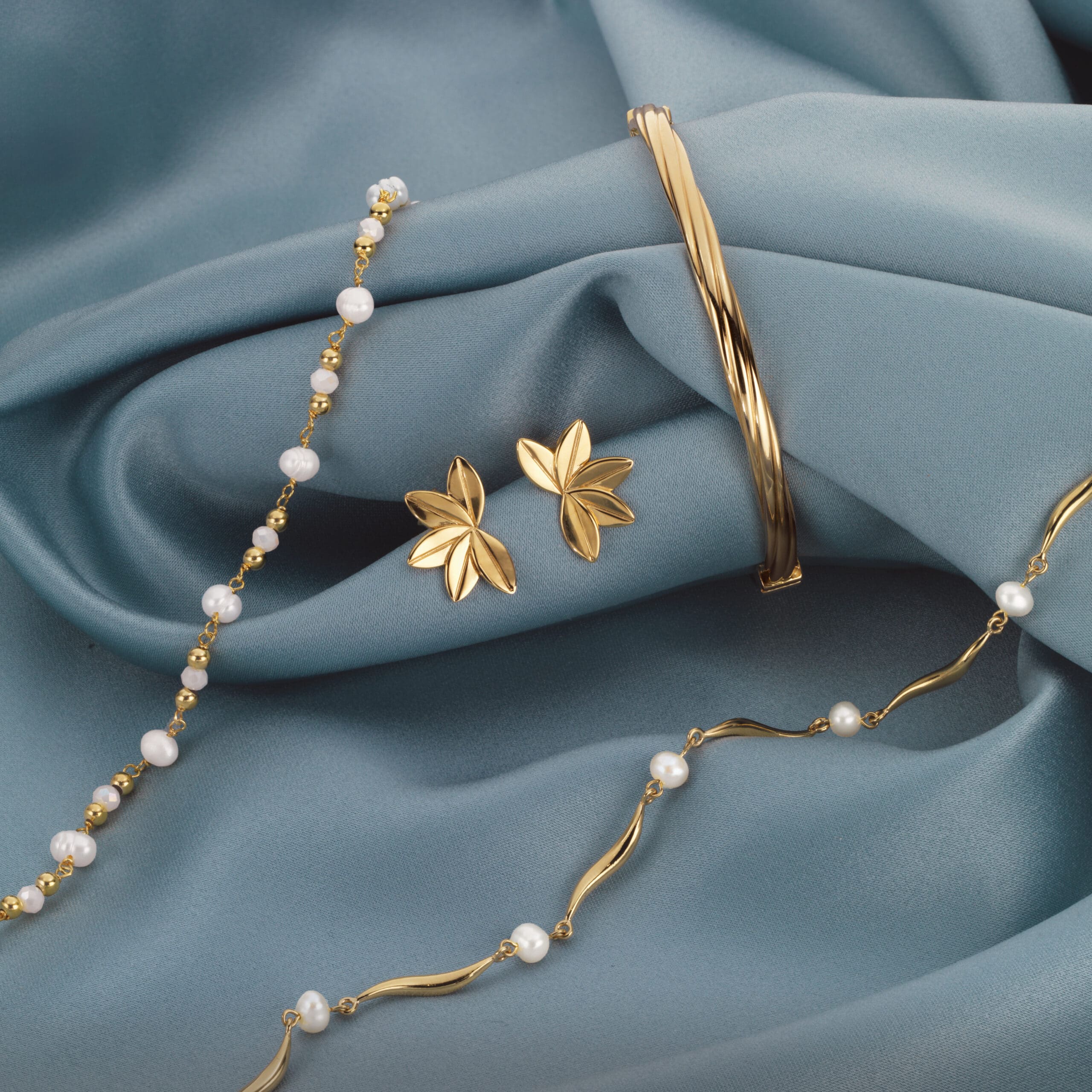 Det delikate blad-design giver øreringene et let og organisk udtryk, mens den varme forgyldning fremhæver detaljerne og skaber en luksuriøs glød. Ørestikkerne er diskrete nok til hverdag, men tilføjer alligevel et elegant blikfang, der løfter ethvert outfit.