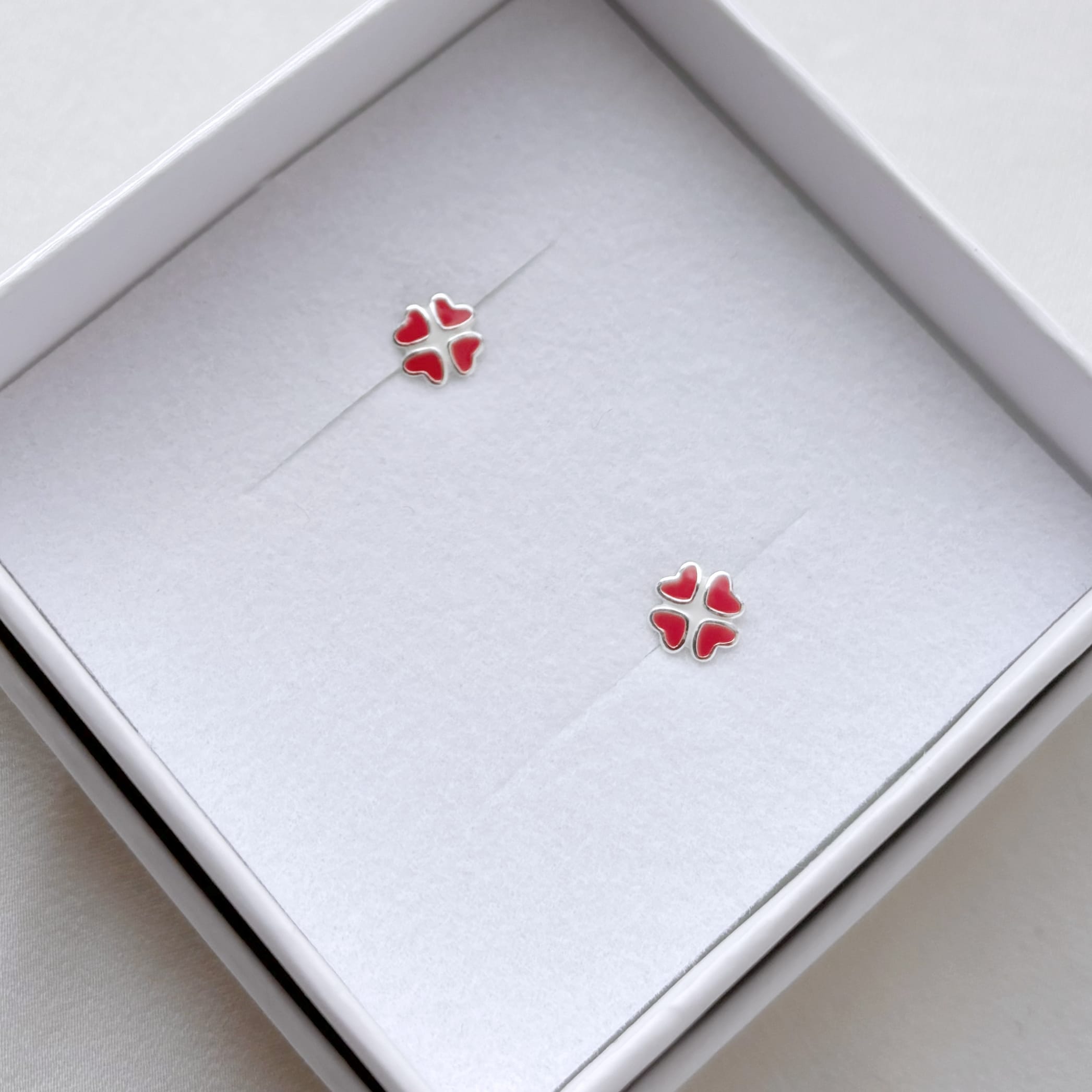 SCROUPLES GIRLS ØRESTIK I SØLV MED RØDE KLØVER BLADE – 164922