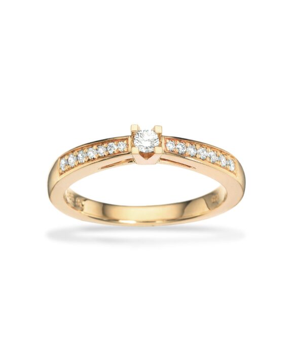 Kleopatra Queen ring i 14 karat guld med 15 brillantslebet diamanter med i alt 0,15 carat W/SI.