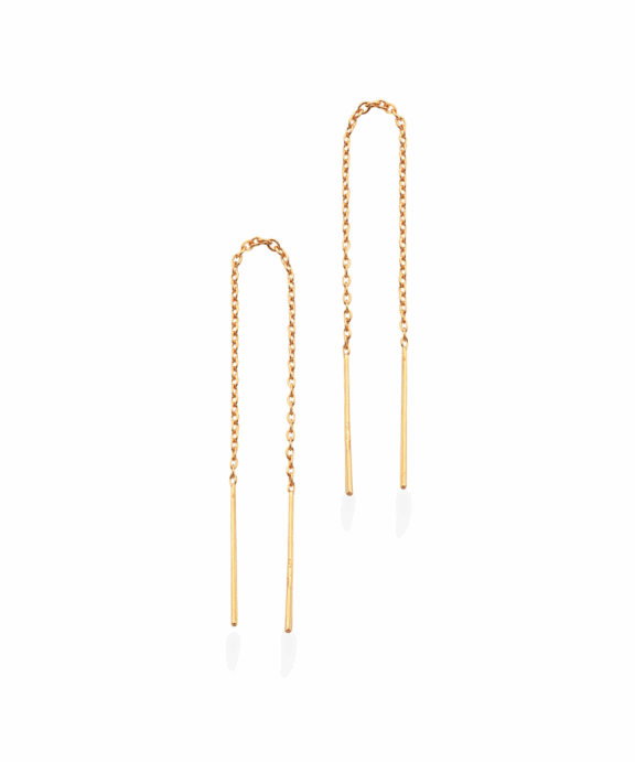 Sølv forgyldt øreringe som kæder. Kæden er til at trække igennem og kommer til at hænge løst i øret. Øreringen er med pinde i enderne.