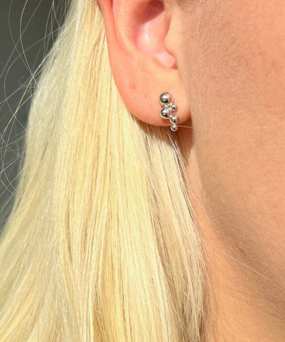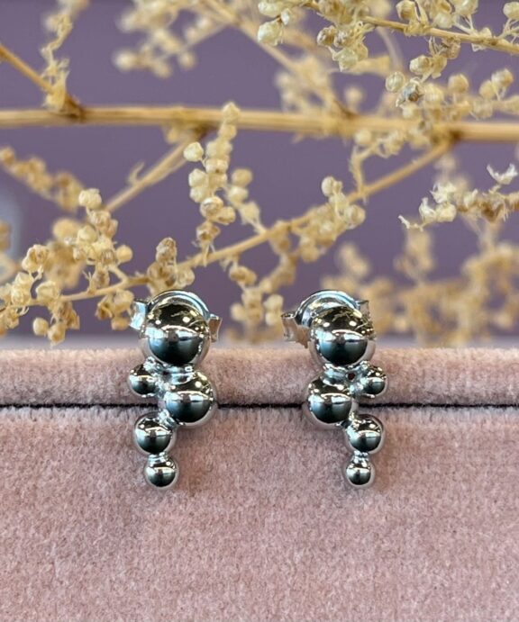 Disse smukke ørestikker er fremstillet i sterling sølv og er blanke og fine i overfladen. Ørestikkerne er designet med sølv kugler i forskellige størrelser. Ørestikken måler 1×12 mm.
