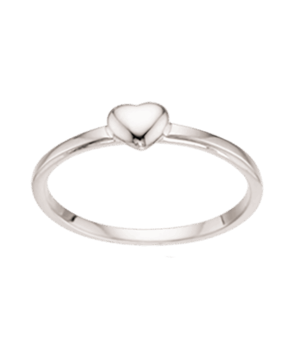 Pige ring i sølv med et fyldt hjerte på toppen. Ringen fås i størrelse 46-52. En sød ring, der kan bruges i mange år.