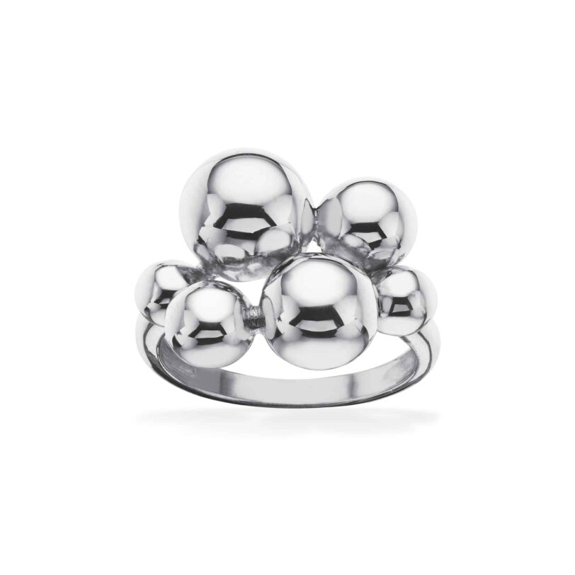 Sølv ring med vindruer/kugler. Ringen er lavet i sterling sølv og har fået en rhodium overflade, så den holder sig pænere i længere tid, Utrolig smuk ring med blank overflade og uden sten.