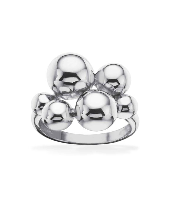 Sølv ring med vindruer/kugler. Ringen er lavet i sterling sølv og har fået en rhodium overflade, så den holder sig pænere i længere tid, Utrolig smuk ring med blank overflade og uden sten.