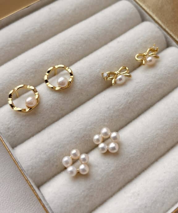 SCROUPLES SLØJFE ØRERINGE I FORGYLDT SØLV MED PERLE – 165482