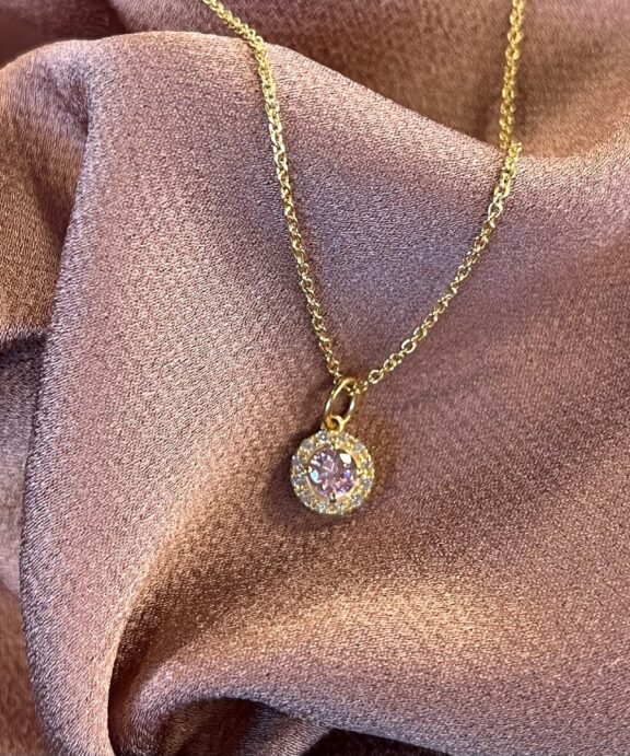 SCROUPLES SØLV FORGYLDT HALSKÆDE MED ROSA FARVET STEN OG ZIRKONER – 237702