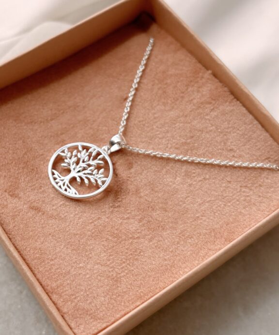 Sølv halskæde med livets træ vedhæng som kan bruges til enhver lejlighed.