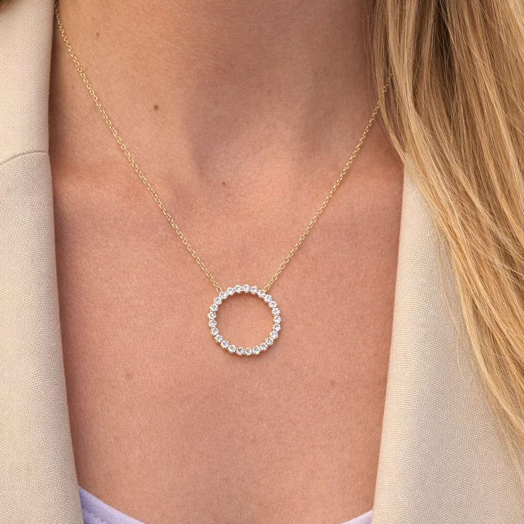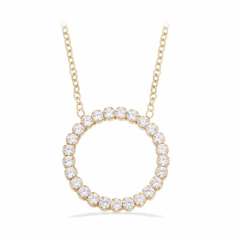 Det fine cirkelvedhæng symboliserer helhed, evighed og balance. Den gyldne overflade i forgyldt sølv tilfører et varmt og eksklusivt udtryk.