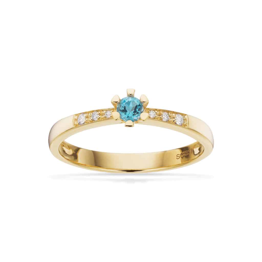 SCROUPLES VIDA DARLING GULD RING MED BLÅ TOPAS OG BRILLANTER- 7823,10BT