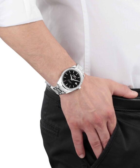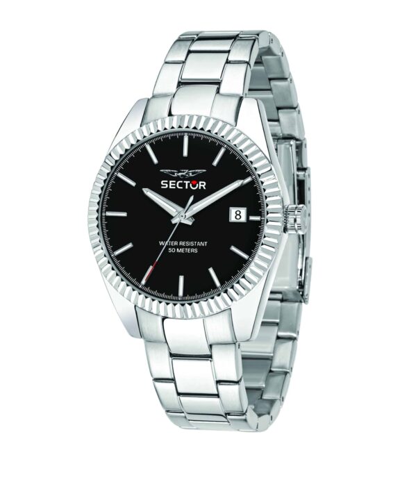 SECTOR 240 UR I STÅL MED LÆNKE OG SORT BAGGRUND 41MM – R3253240011