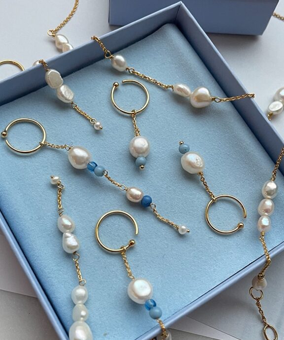SISTIE ELLA ØREHÆNGER MED BLÅ STEN OG PERLE – Z1161SWSBLUE