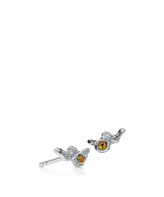 Disse søde øreringe er fremstillet i 100% genanvendt sterling sølv. Øreringene er designet som ørestikker, og har en organisk form i en banket overflade, og er sat med guld zirkonia.