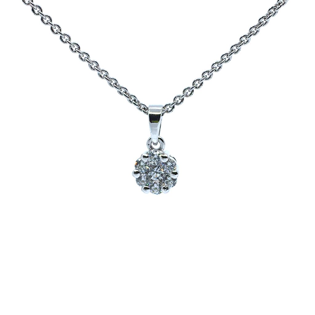 Stenene der sidder i vedhænget er syntetiske zirkonia.