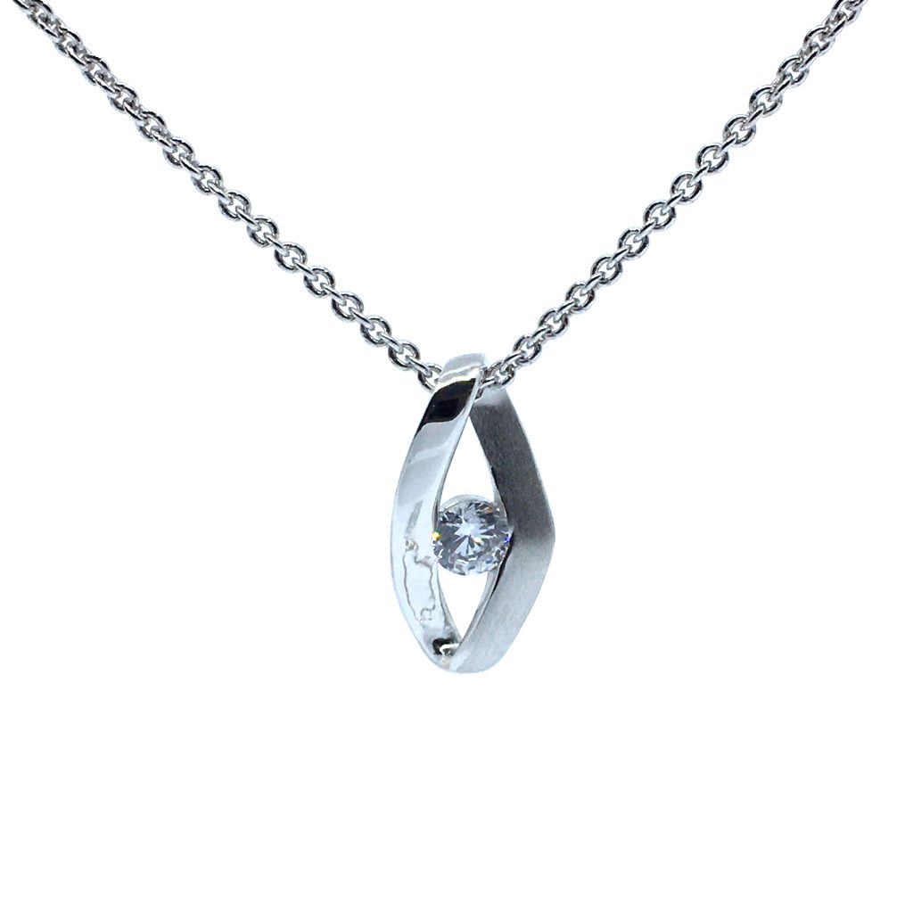 SØLV HALSKÆDE MAT/BLANK MED SYNTETISK ZIRKONIA