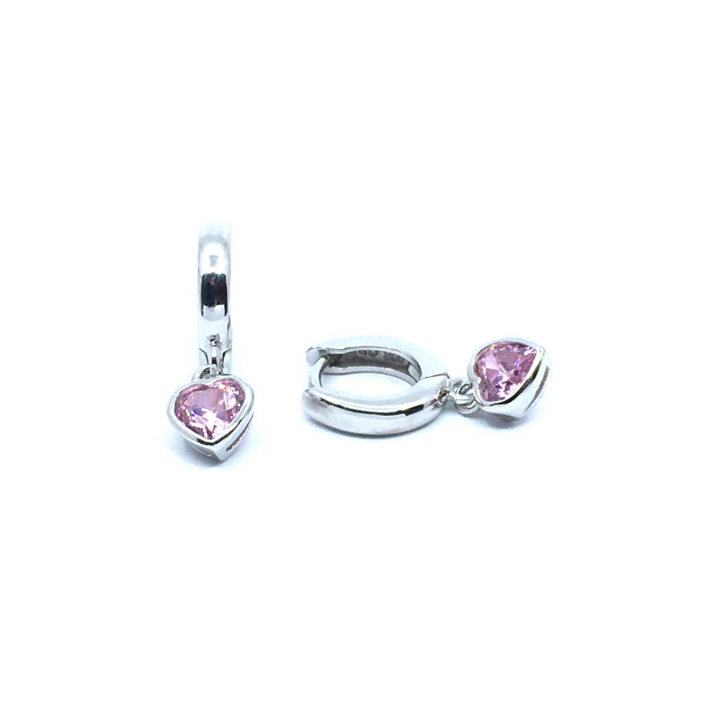 SØLV ØRERINGE CREOL DIAMETER 12 MM MED LYSERØD HJERTE SYNTETISK ZIRKONIA