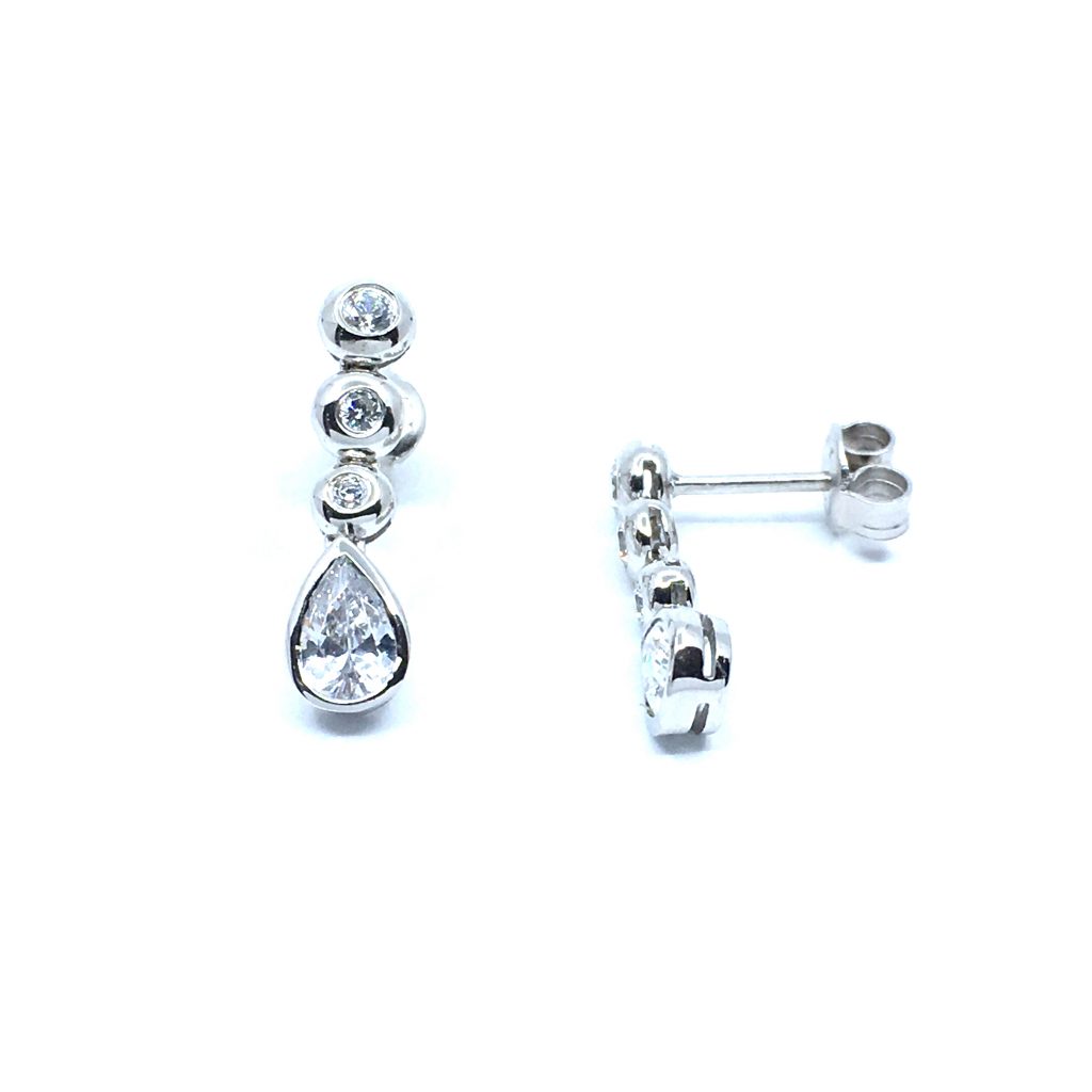 SØLV ØRERINGE HÆNGER RHODINERET MED SYNTETISKE ZIRKONIA