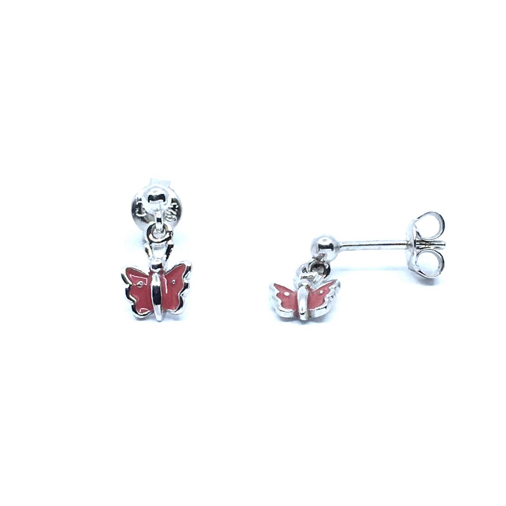 SØLV ØRERINGE HÆNGER STIK MED LYSERØD SOMMERFUGL