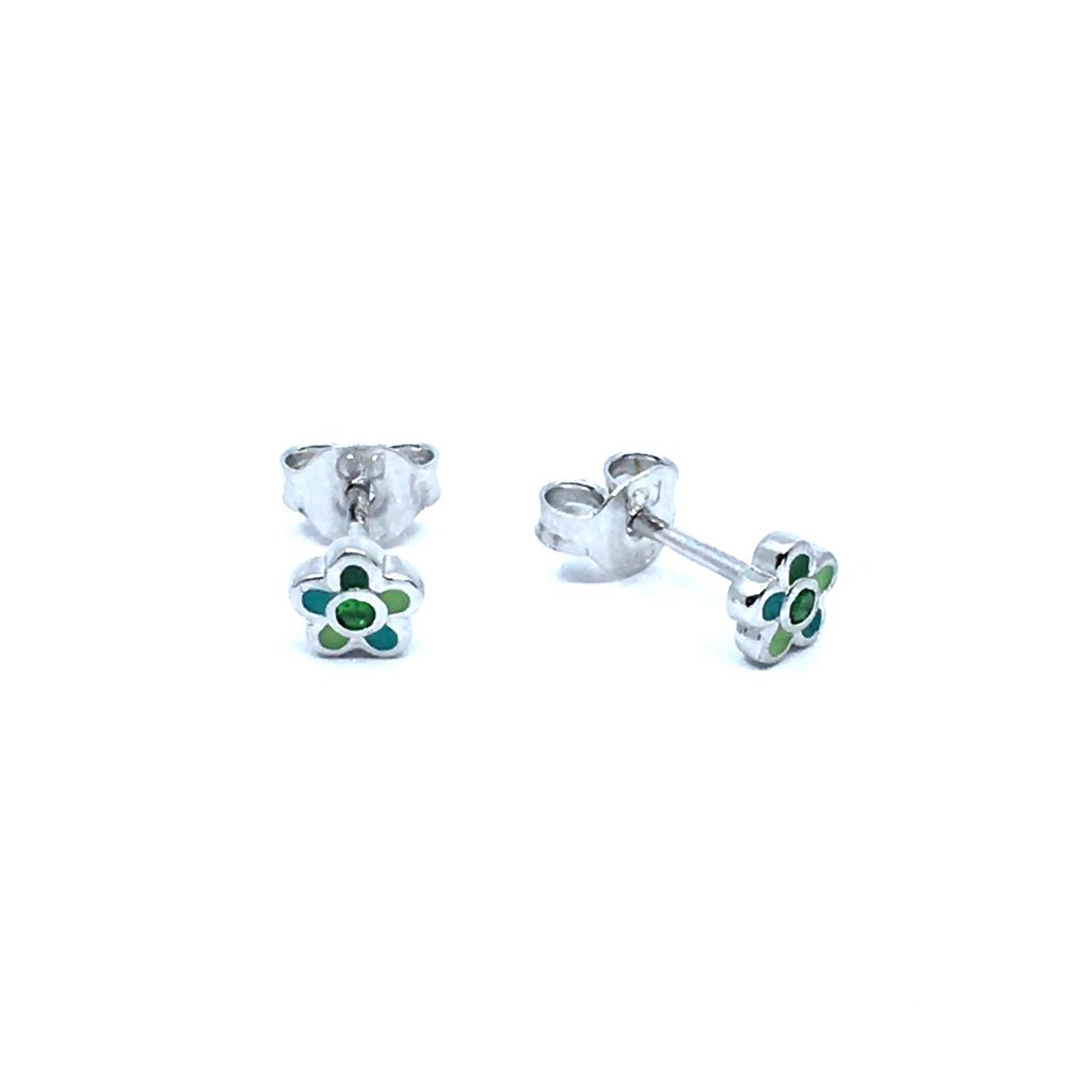 SØLV ØRERINGE STIK BLOMST FORESKELLIGE GRØNNE BLADE