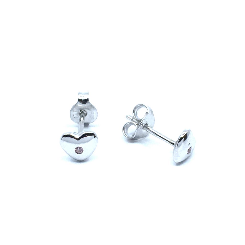 SØLV ØRERINGE STIK HJERTE MED LYSERØD SYNTETISK ZIRKONIA