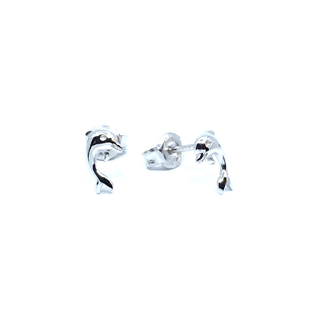 SØLV ØRERINGE STIK RHODINERET MED DELFIN