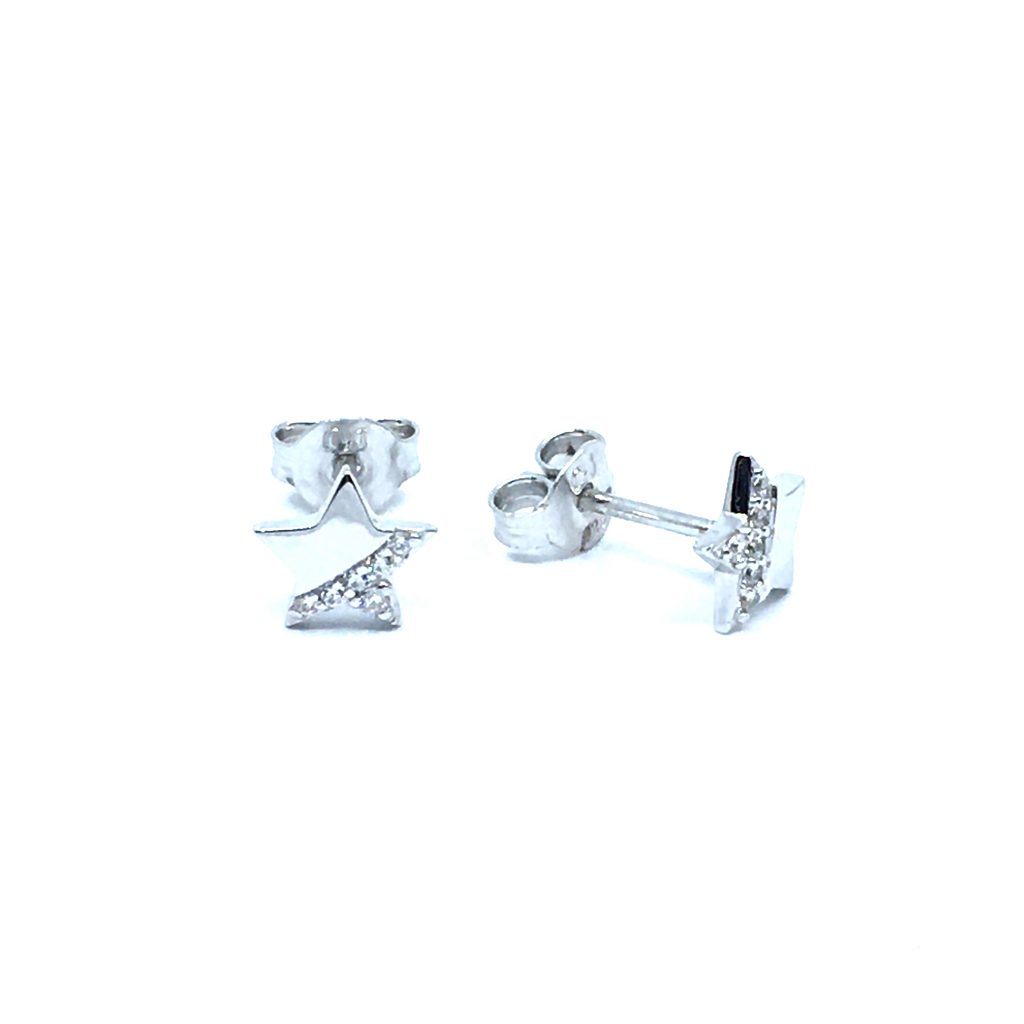 Sølv øreringe på stik stjerne med syntetiske zirkonia. Øreringene er rhodineret så de holder sig pænere i længere tid. Super fine øreringe med massere af spil på grund af den syntetiske zirkonia.