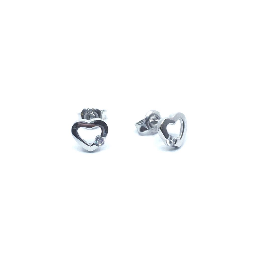 SØLV ØRESTIK RHODINERET HJERTE MED SYNT. ZIRKONIA