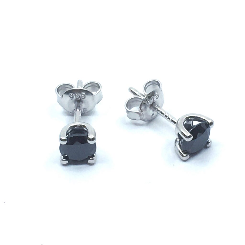 SØLV ØRESTIK RHODINERET 4 GRABBER MED SORT SYNT. ZIRKONIA 5 MM