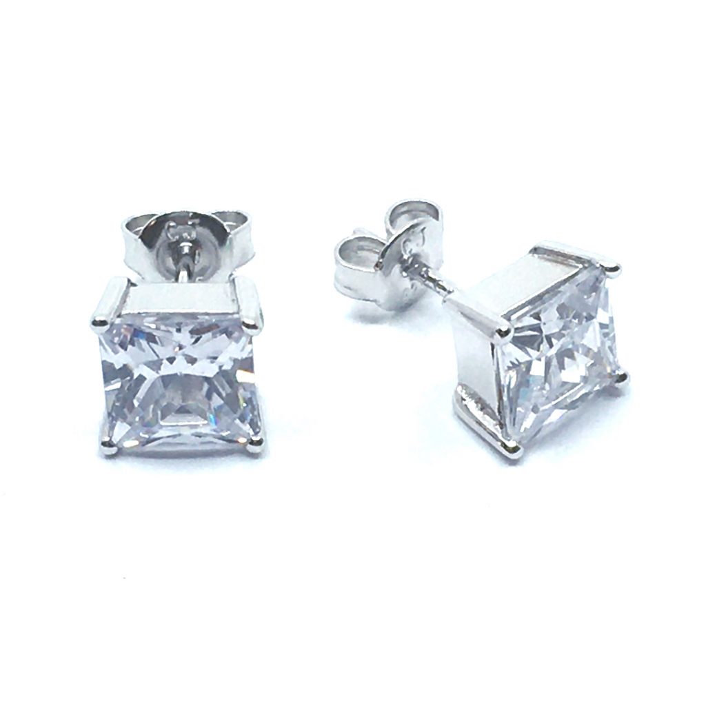 SØLV ØRESTIK RHODINERET 7 MM FIRKANTET SYNT. ZIRKONIA 4 GRABBER