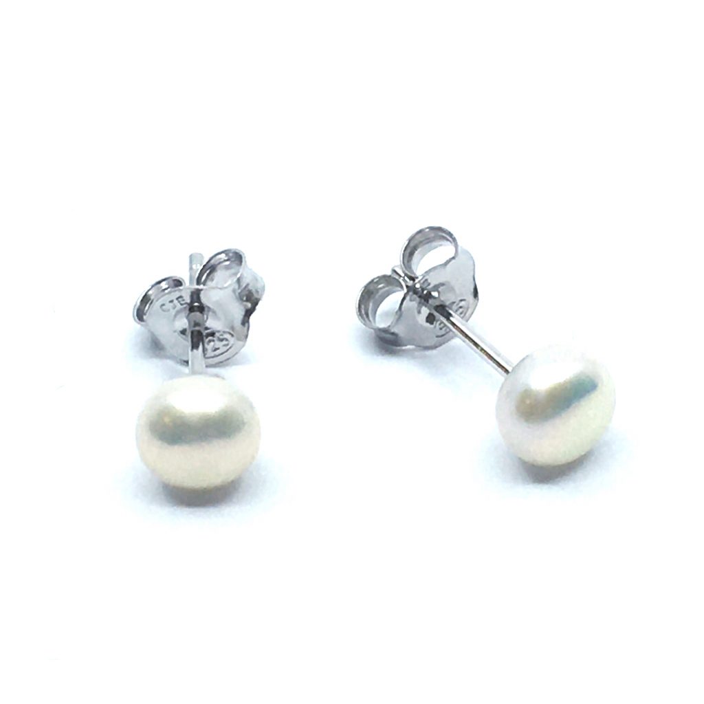 SØLV ØRESTIK RHODINERET HVID MED KNAP FERSKVANDSPERLE 4 MM