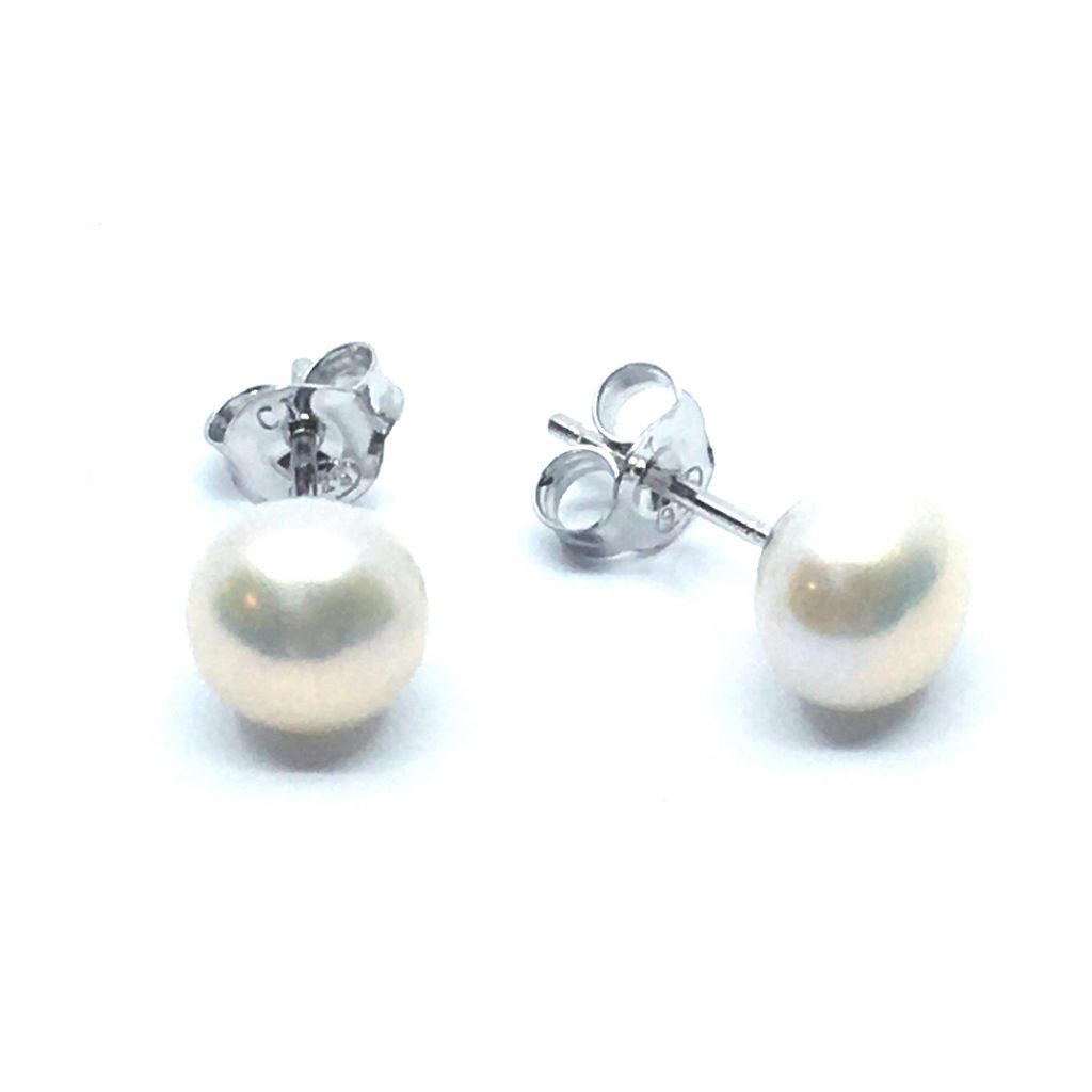 SØLV ØRESTIK RHODINERET HVID MED KNAP FERSKVANDSPERLE 6 MM