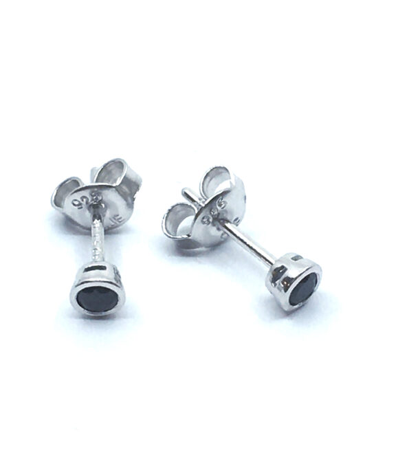 SØLV ØRESTIK RHODINERET MED SORT SYNT. ZIRKONIA 2 MM