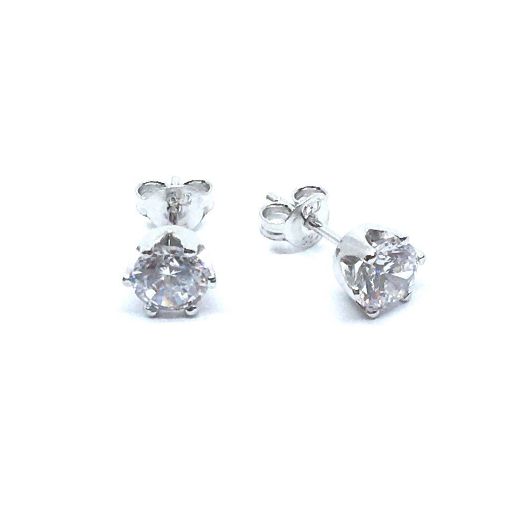 SØLV ØRESTIK RHODINERET MED SYNT. KLAR ZIRKONIA 7 MM 6 GRAPPET FATNING