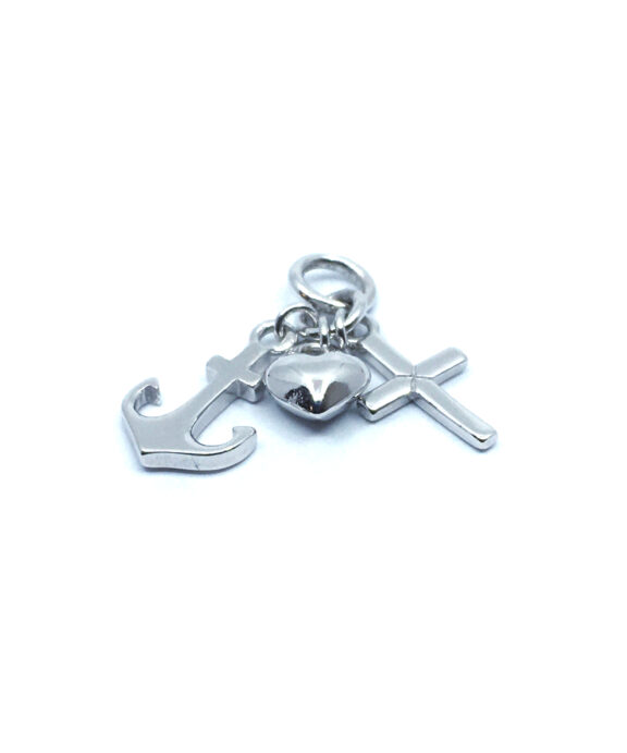 SØLV RHODINERET MEDIUM VEDHÆNG TRO, HÅB OG KÆRLIGHED MASSIV 14X12 MM