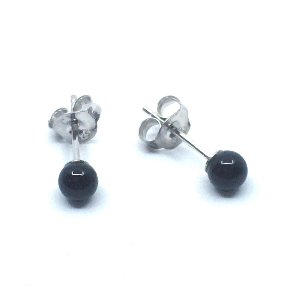 SØLV RHODINERET ØRESTIK MED RUND SORT ONYX 2 MM