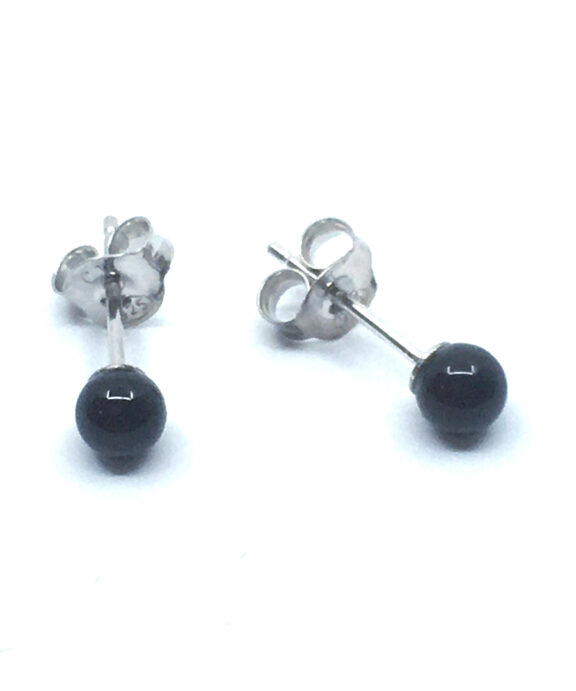 SØLV RHODINERET ØRESTIK MED RUND SORT ONYX 2 MM