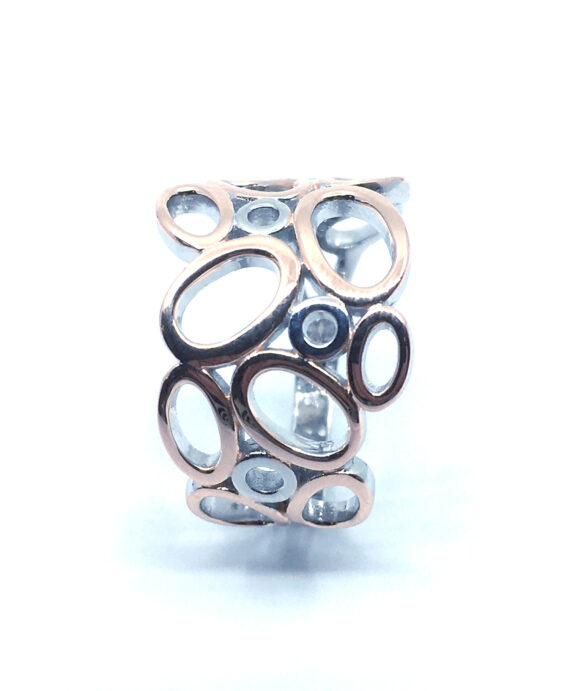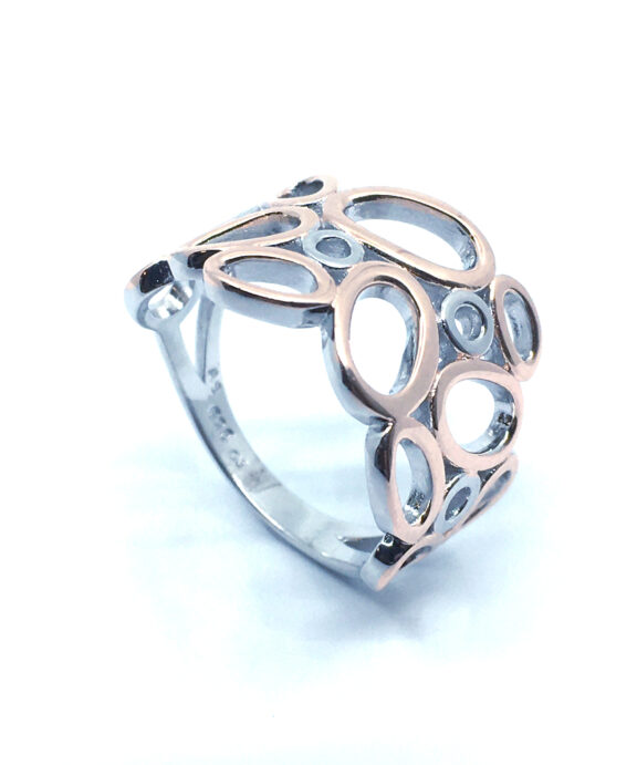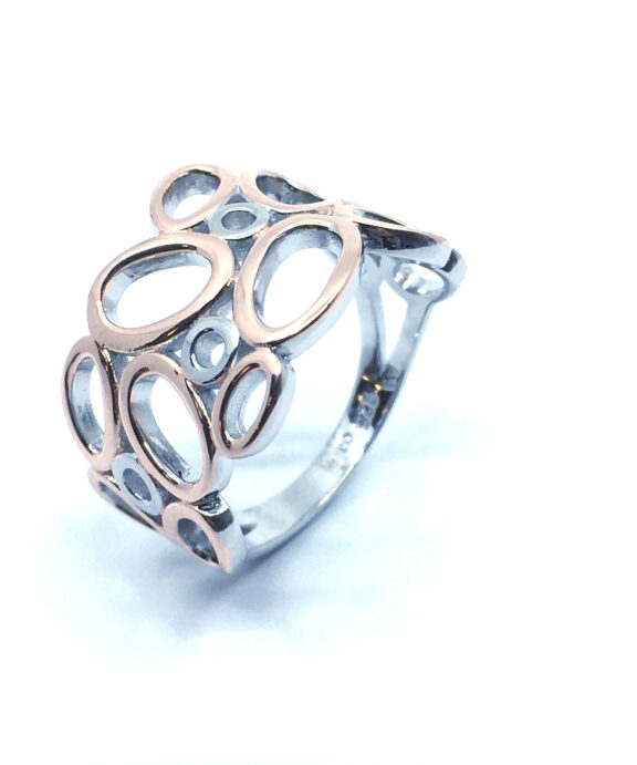 SØLV RHODINERET RING MED ROSA FORGYLDNING OVALER