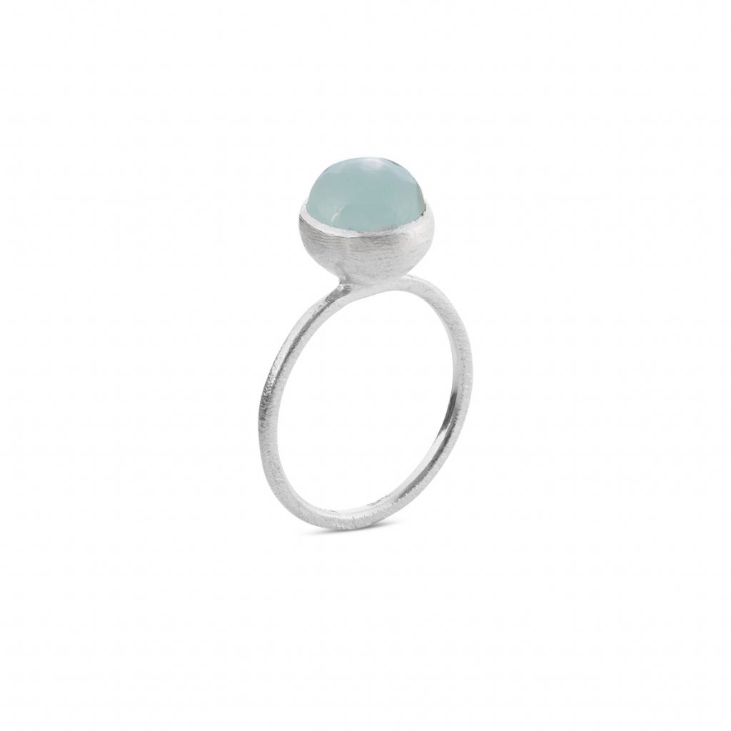 Ring i lyst sterlingsølv med lys blå krystal fra Susanne Friis Bjørner. Stenen måler 8mm i diameter.