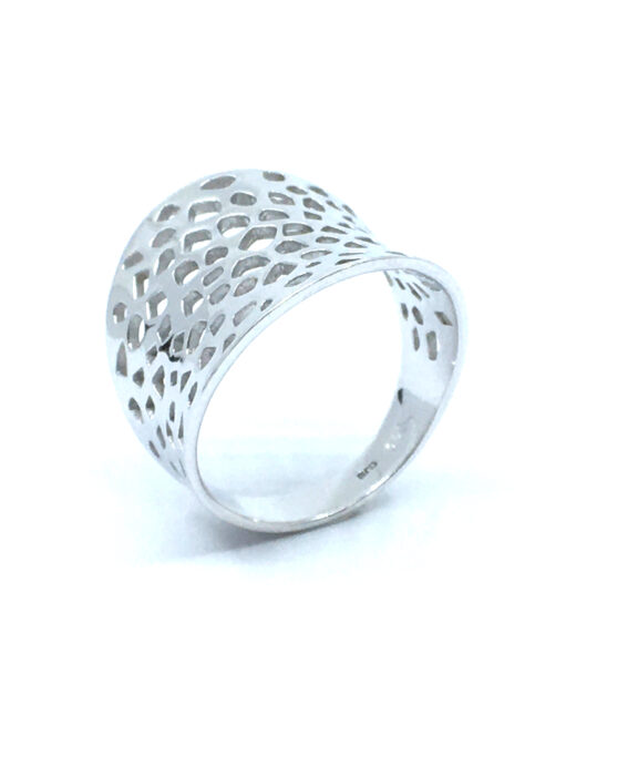 SØLV RING RHODINERET BRED MASSIV HUL MØNSTER