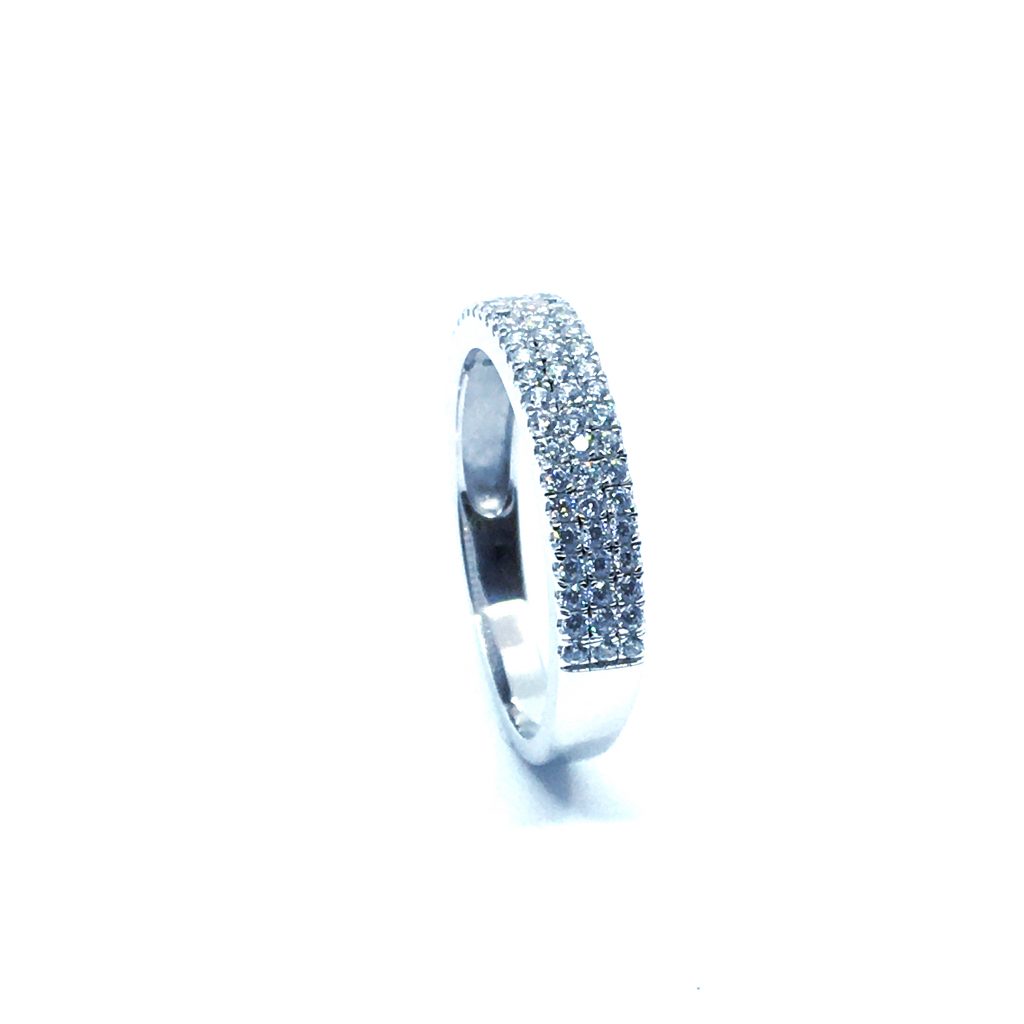 SØLV RING RHODINERET MED 3 RÆKKER SYNTETISKE ZIRKONIA
