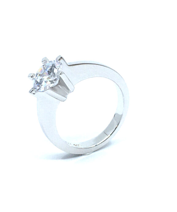 SØLV RING RHODINERET PRINSESSE MED SYNTETISK ZIRKONIA