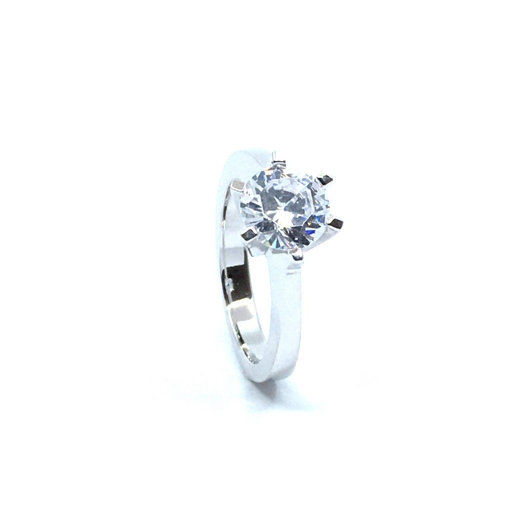 SØLV RING RHODINERET PRINSESSE MED SYNTETISK ZIRKONIA